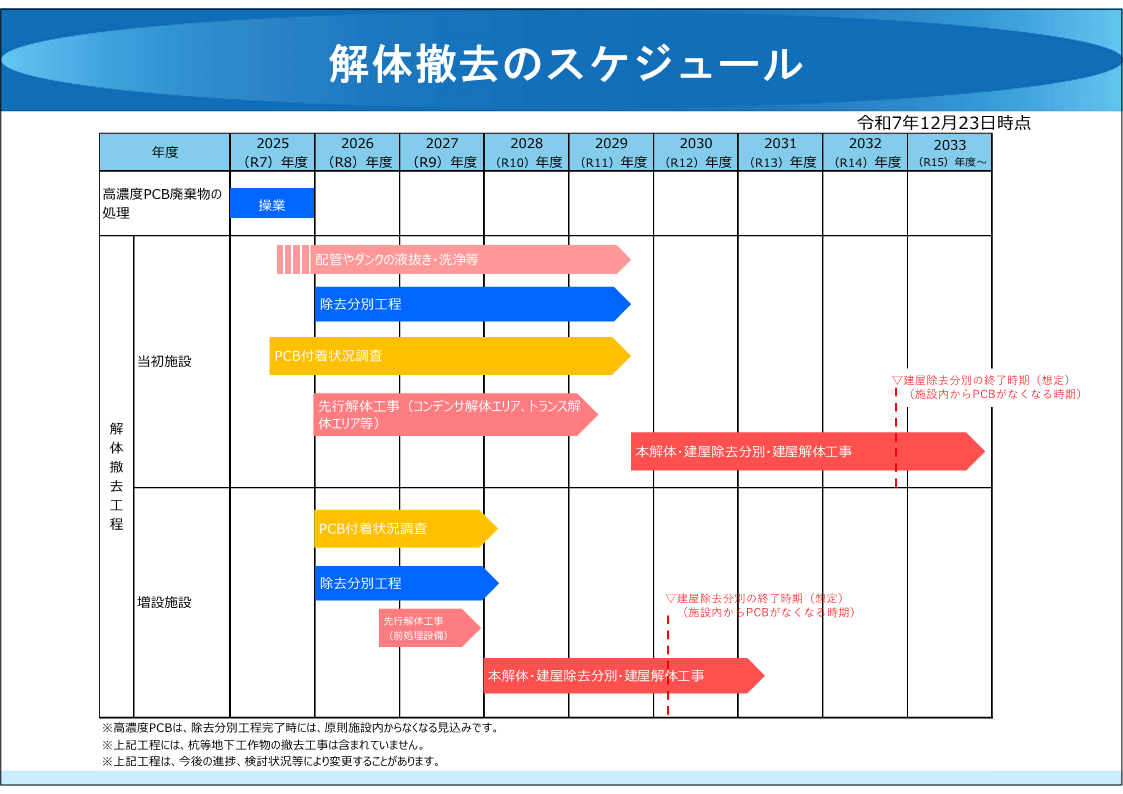 また、「北海道PCB処理事業所PCB廃棄物処理施設の解体撤去計画の大要」