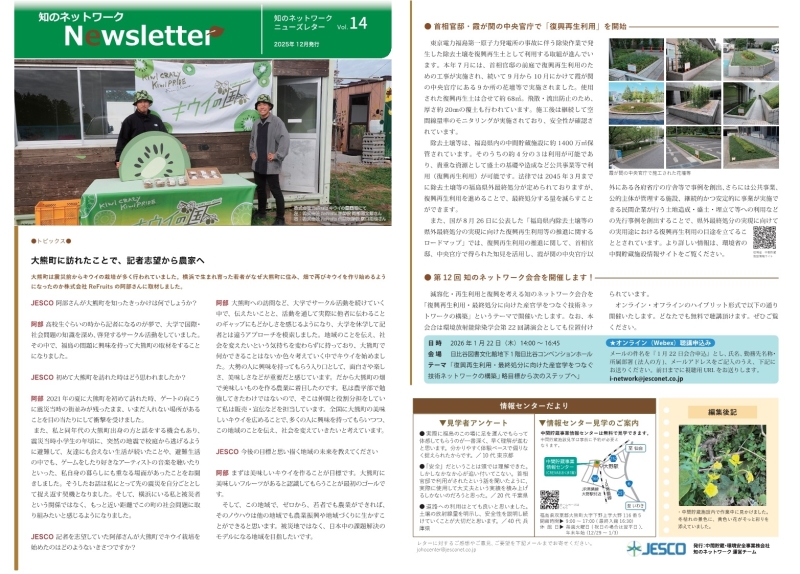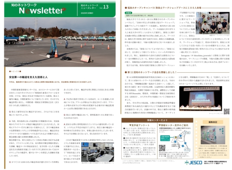 「知のネットワーク」の活動紹介や、中間貯蔵事業の進捗状況、福島復興に向けた様々な取り組みを知っていただくためのきっかけづくりを目的として、2022年7月より発行しております。